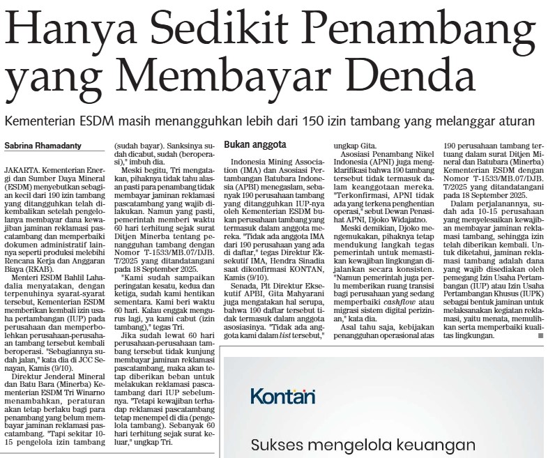 Hanya Sedikit Penambang yang Membayar Denda_Kontan_10102025_P.13.jpg