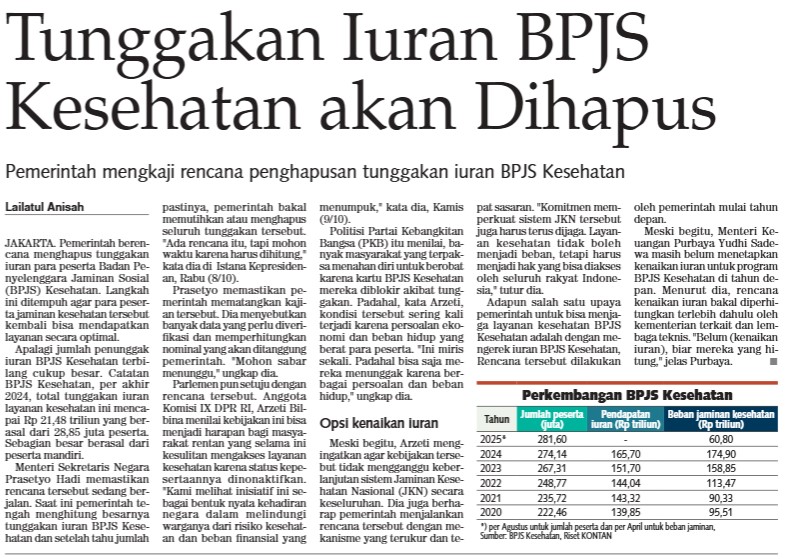 Tunggakan Iuran BPJS Kesehatan akan Dihapus_Kontan_10102025_P.14.jpg